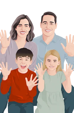 - Upload any photo; we hand-draw the vector portrait (no auto-trace).