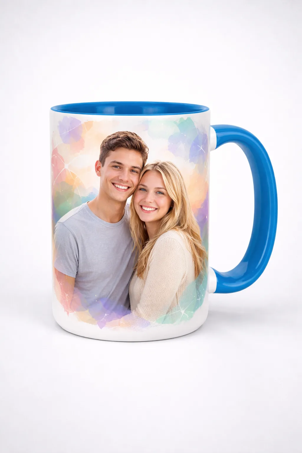 Turn your favorite picture into a Custom Photo Ceramic Mug Colored Handle—a 15oz ceramic mug that stands out with a solid colour handle and lining. A personal, practical gift for coffee, tea, or hot chocolate.