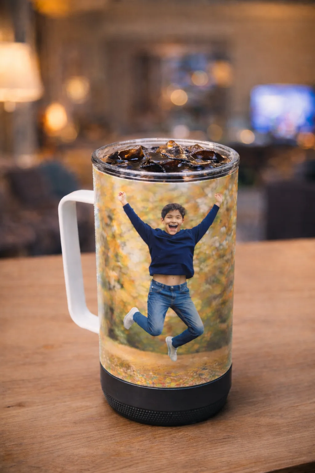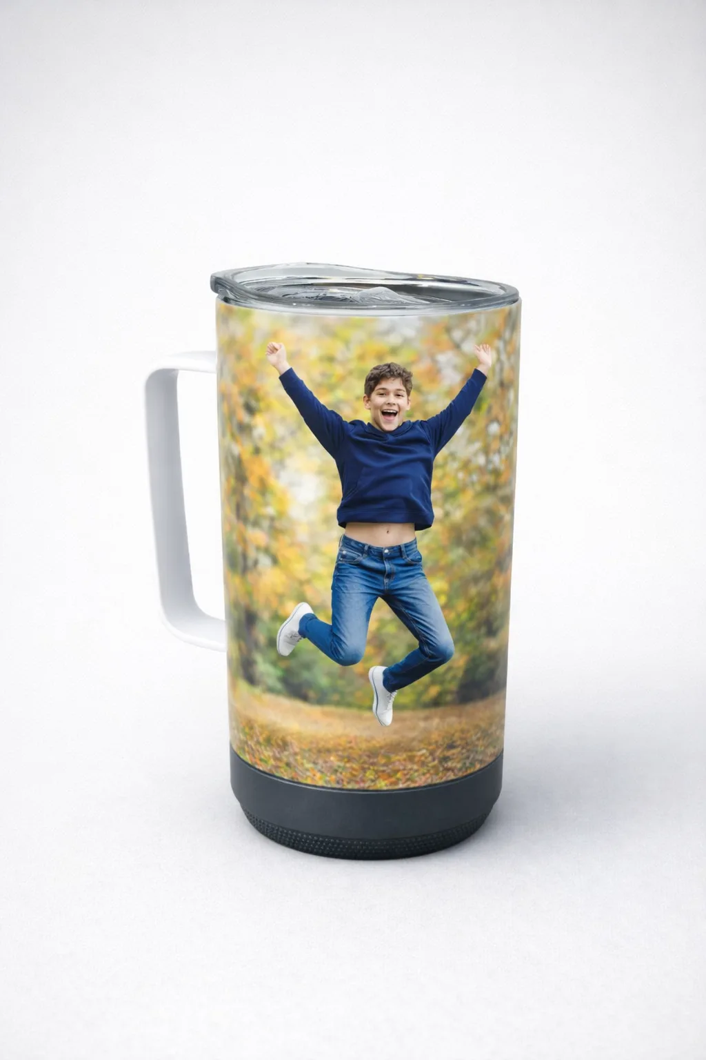 Walk in style with your music playing out of your tumbler—this 14oz Custom Photo Tumbler Mugs lets you add your favorite picture to a double-walled insulated stainless steel tumbler with a waterproof speaker base.